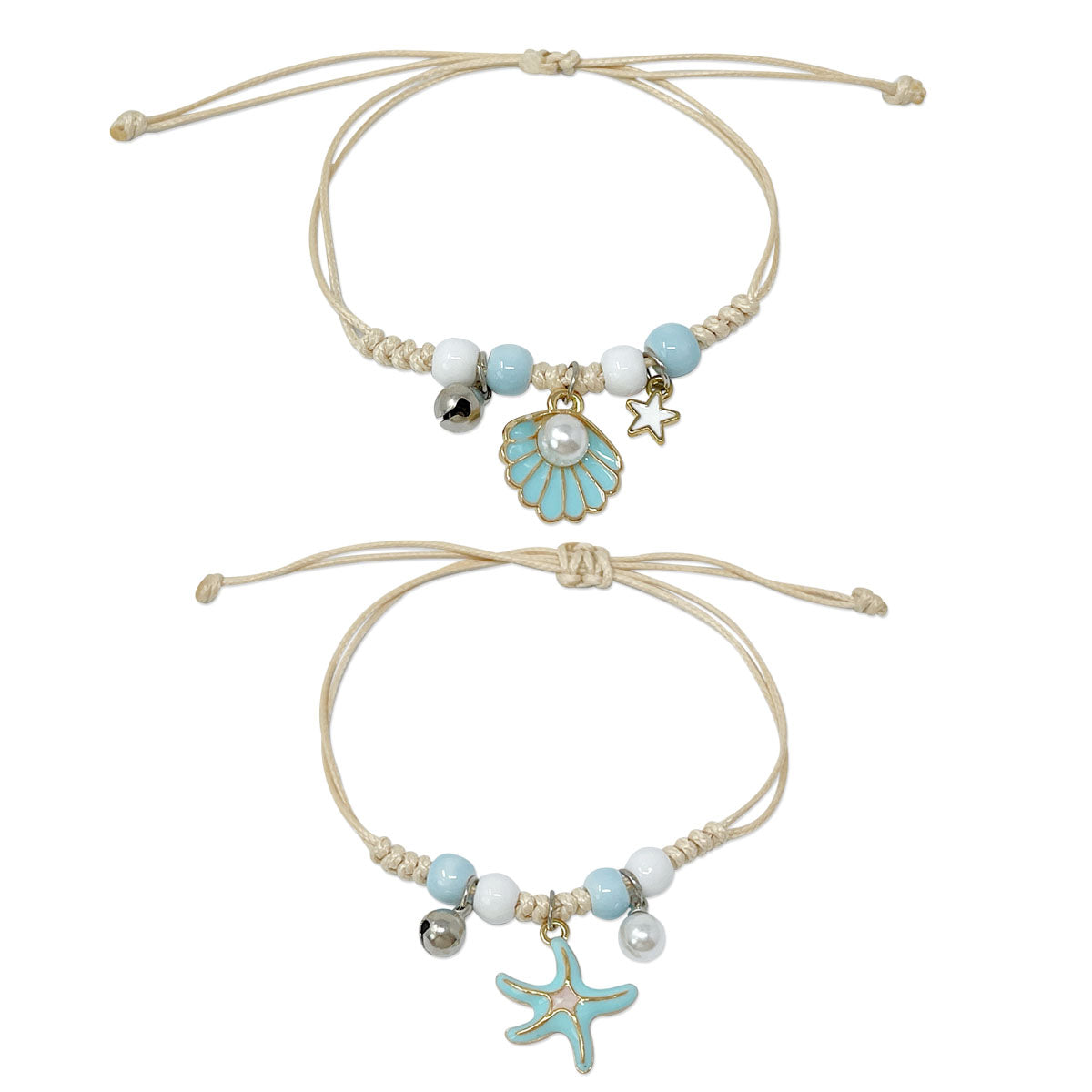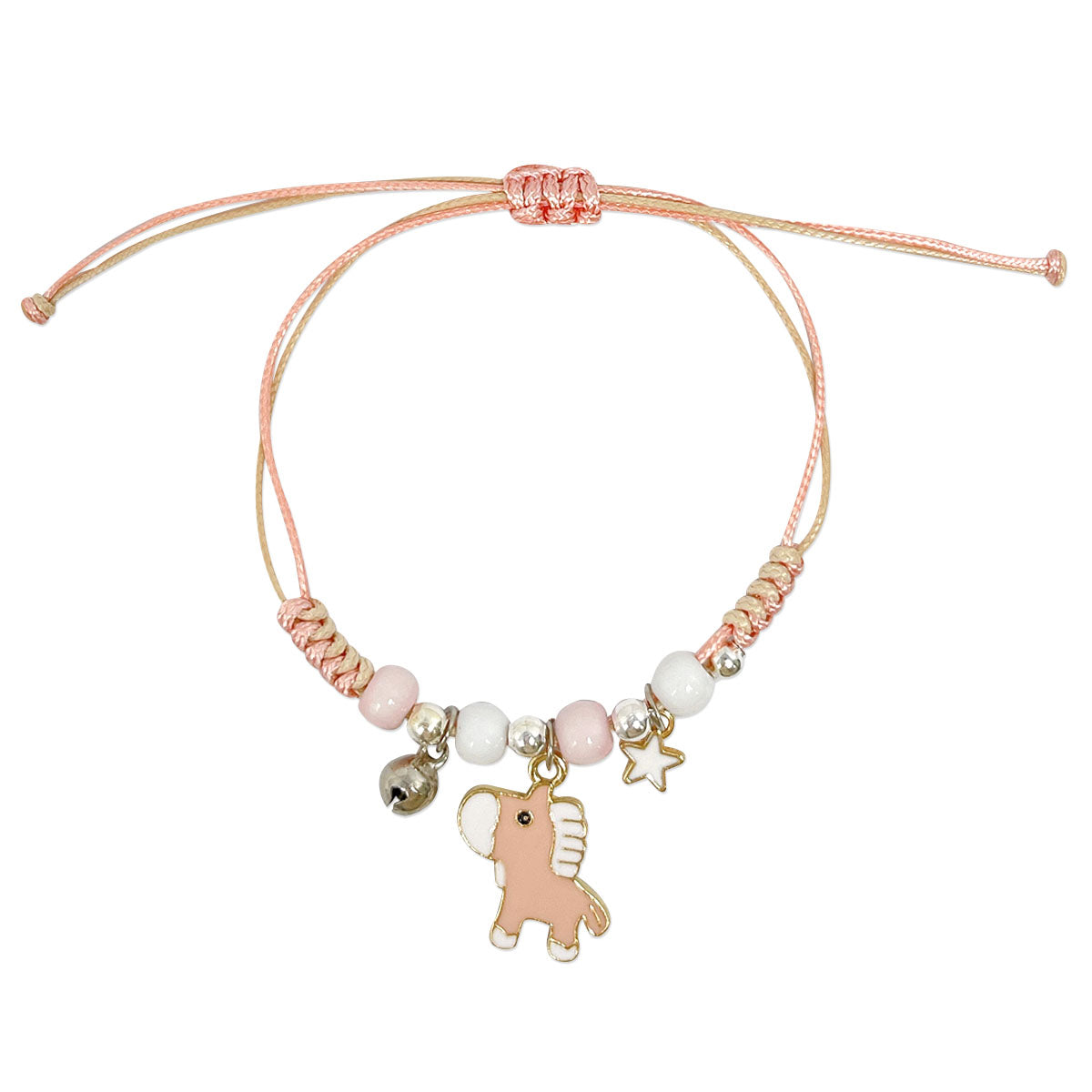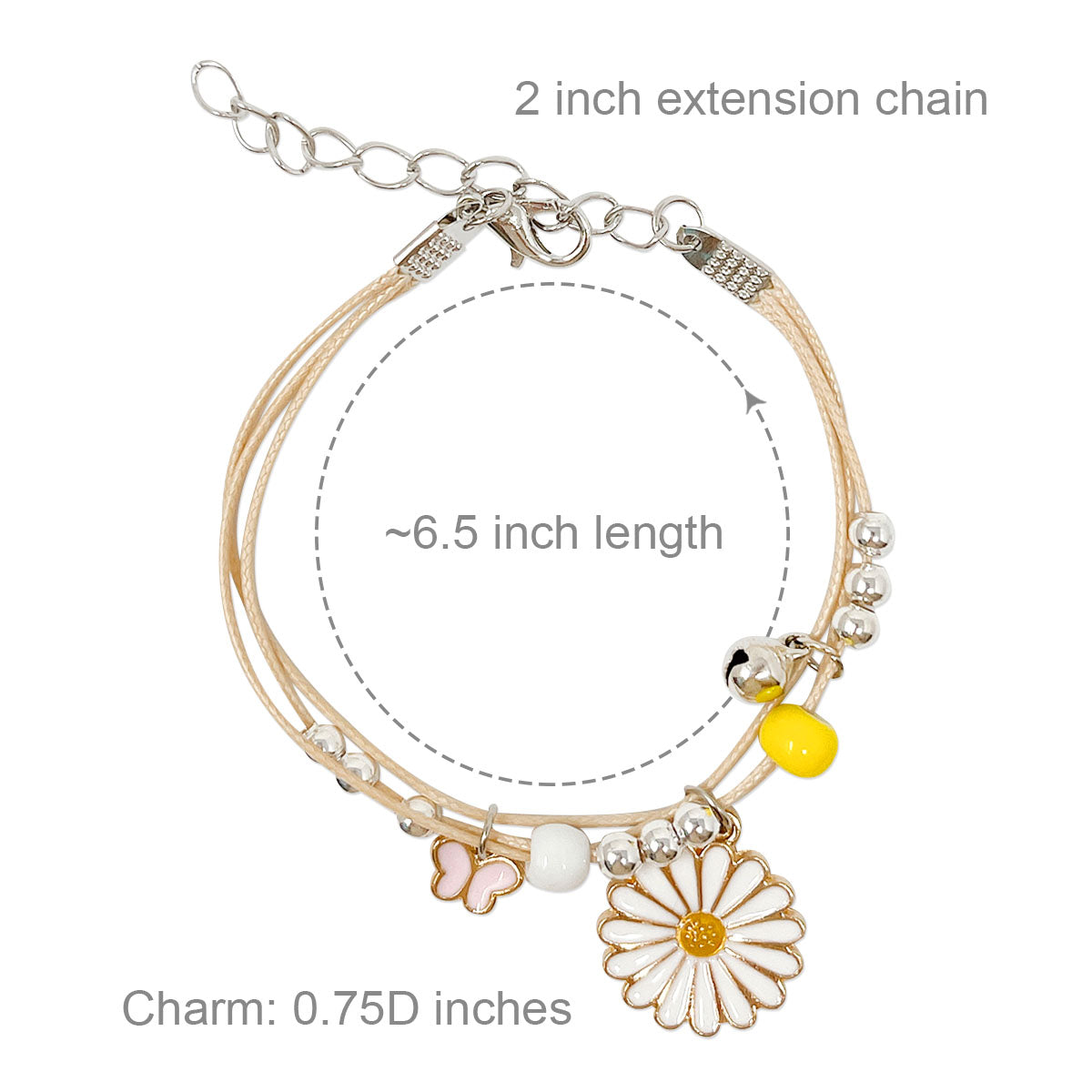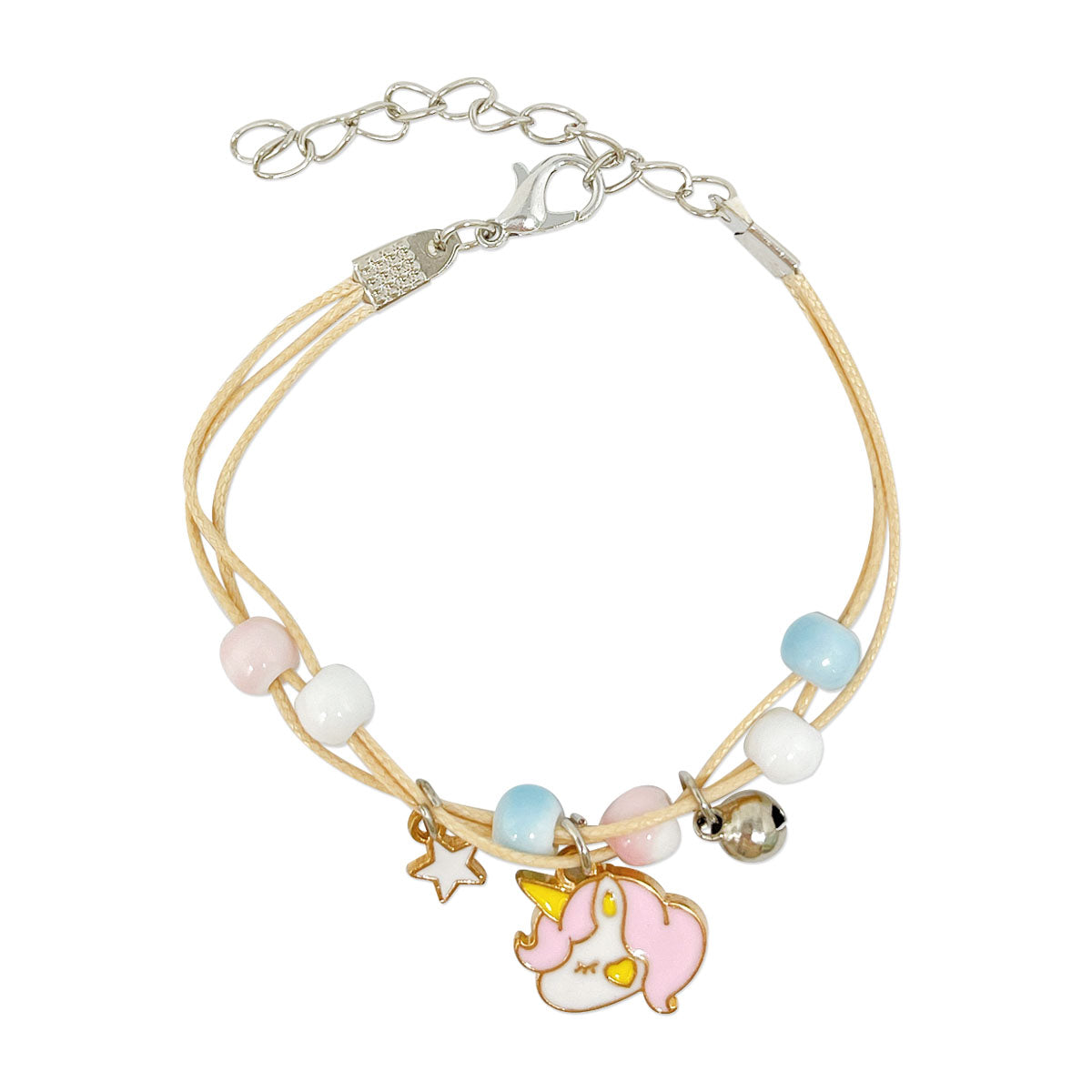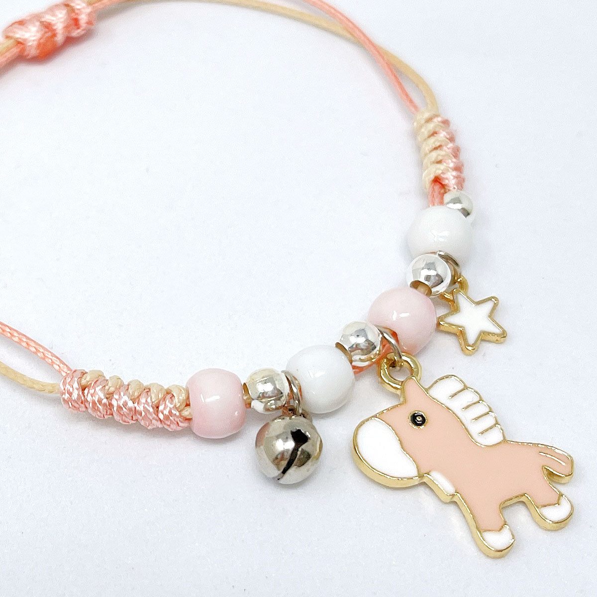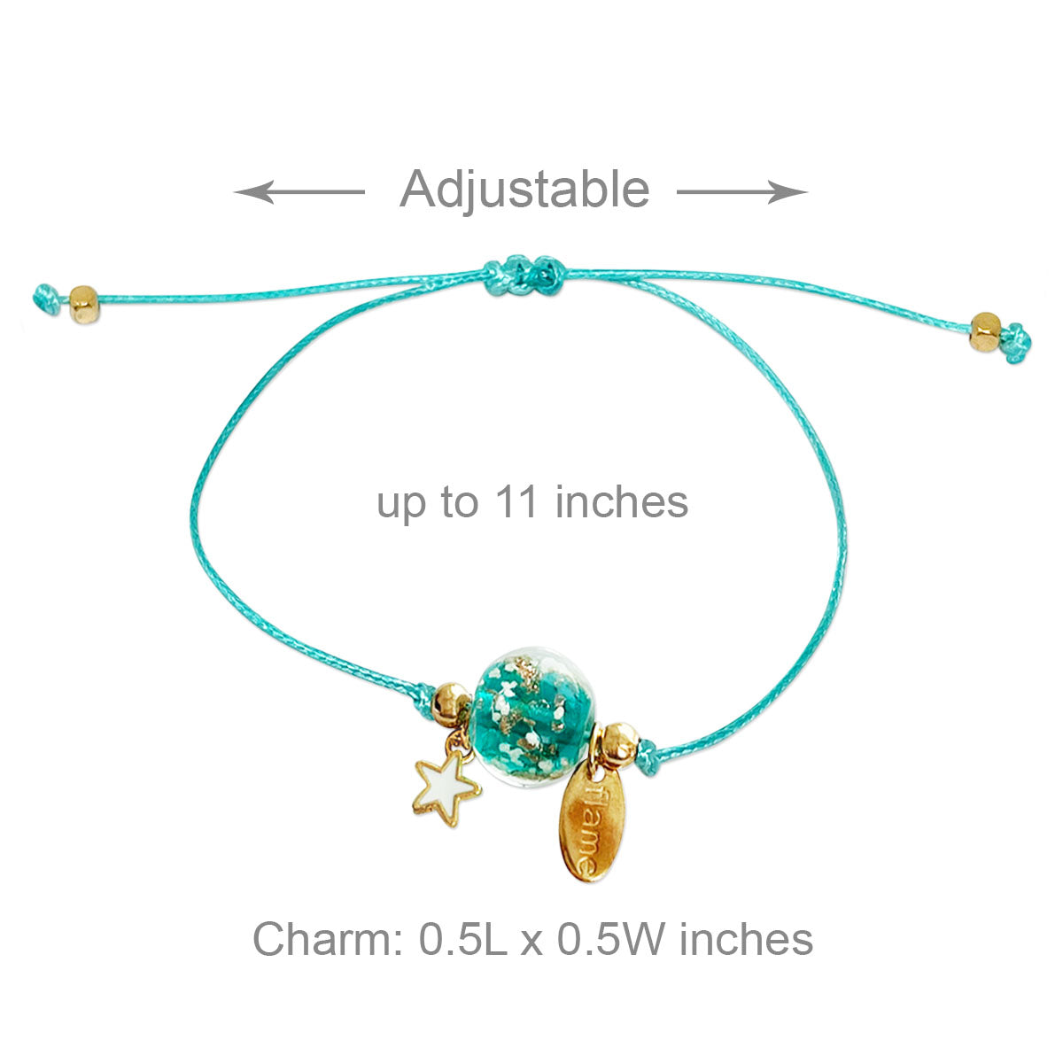 - Adjustable bracelets: circumference adjustable from approximately 2 to 9.25 inches; charm size varies by design, ~0.5L x 0.75W inches; beads 0.19W inches.