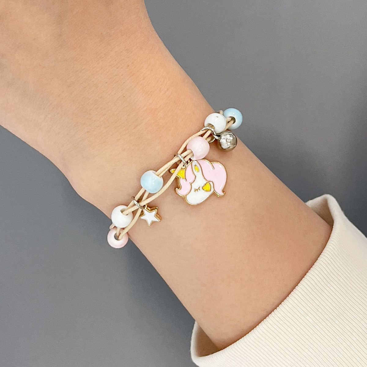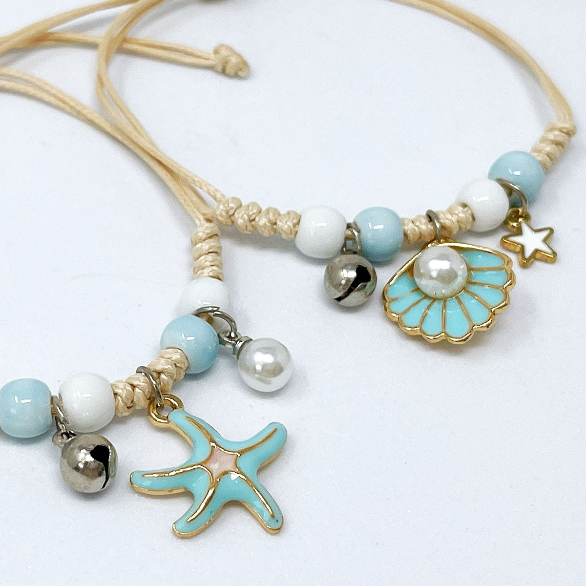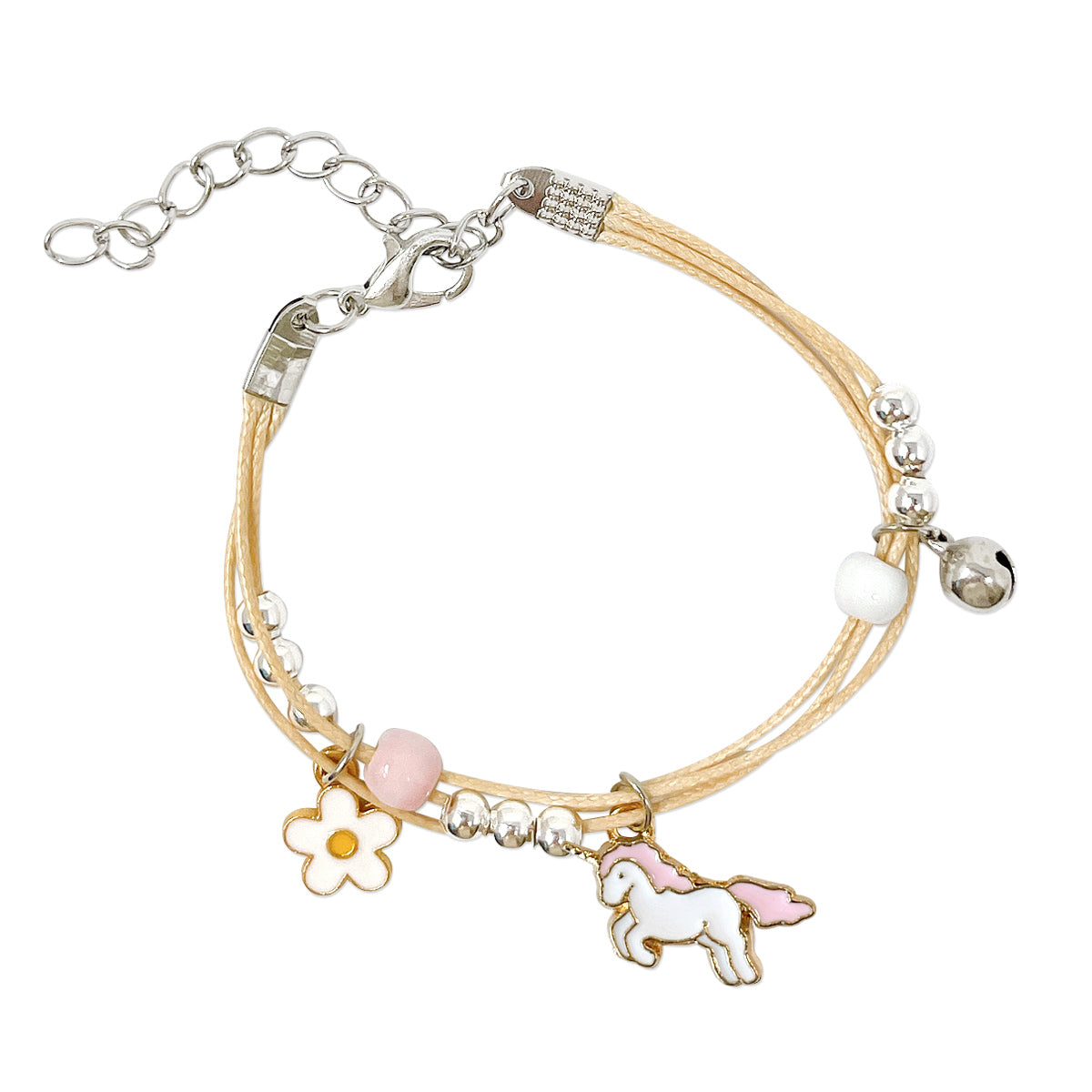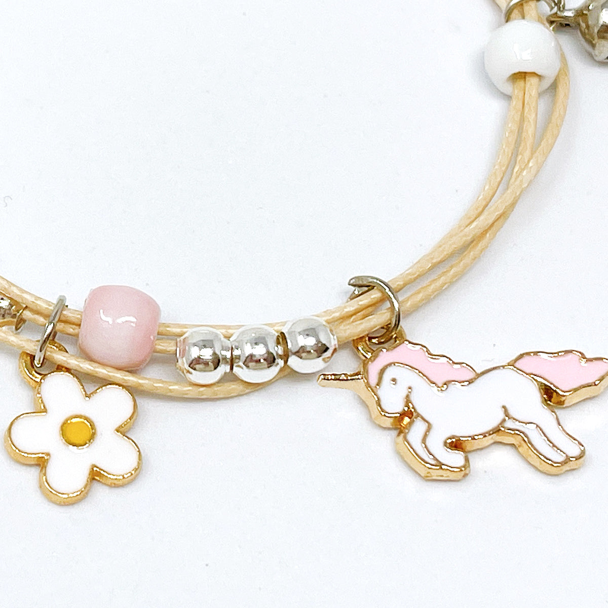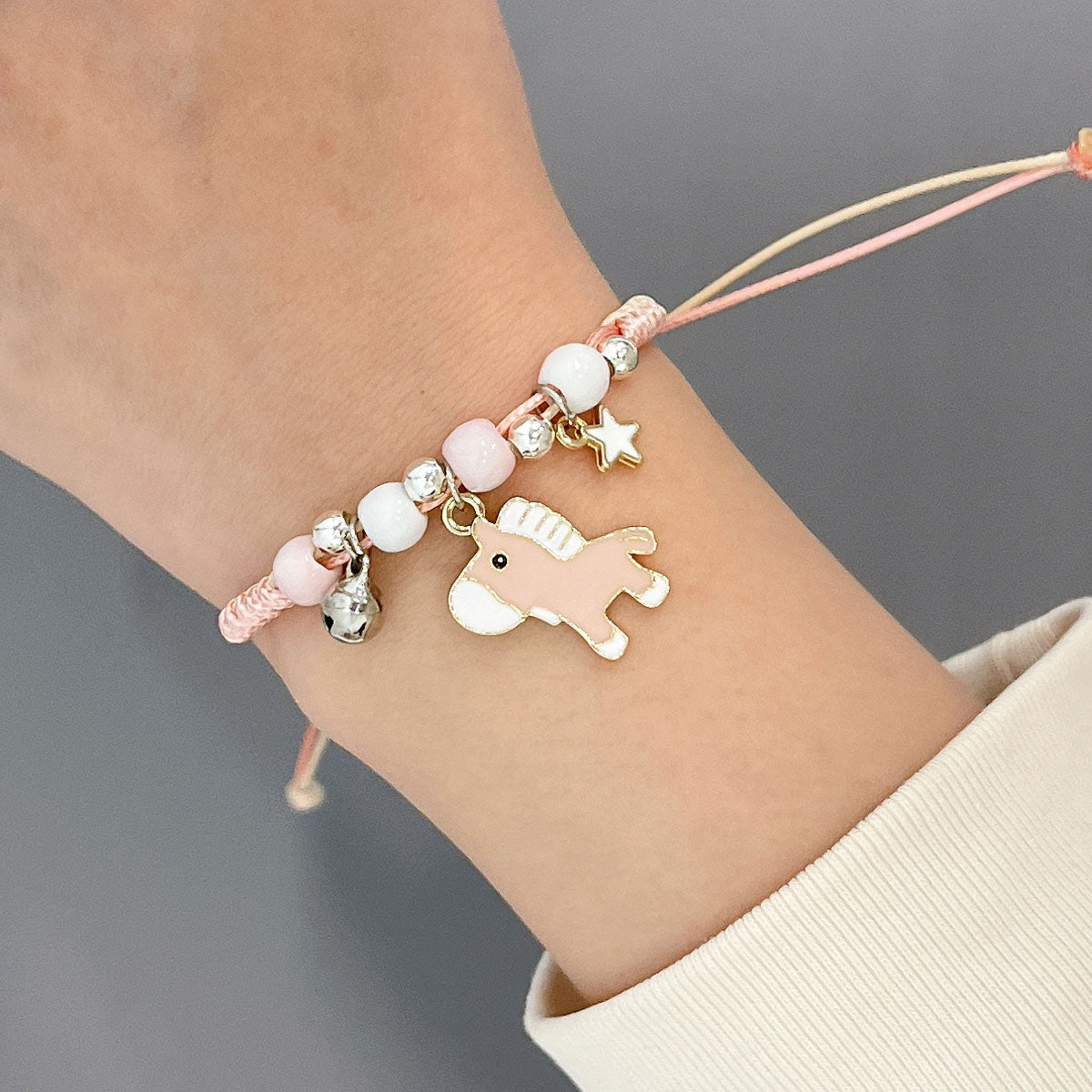 - Adjustable bracelets: circumference adjustable from approximately 2 to 9.25 inches; charm size varies by design, ~0.5L x 0.75W inches; beads 0.19W inches.