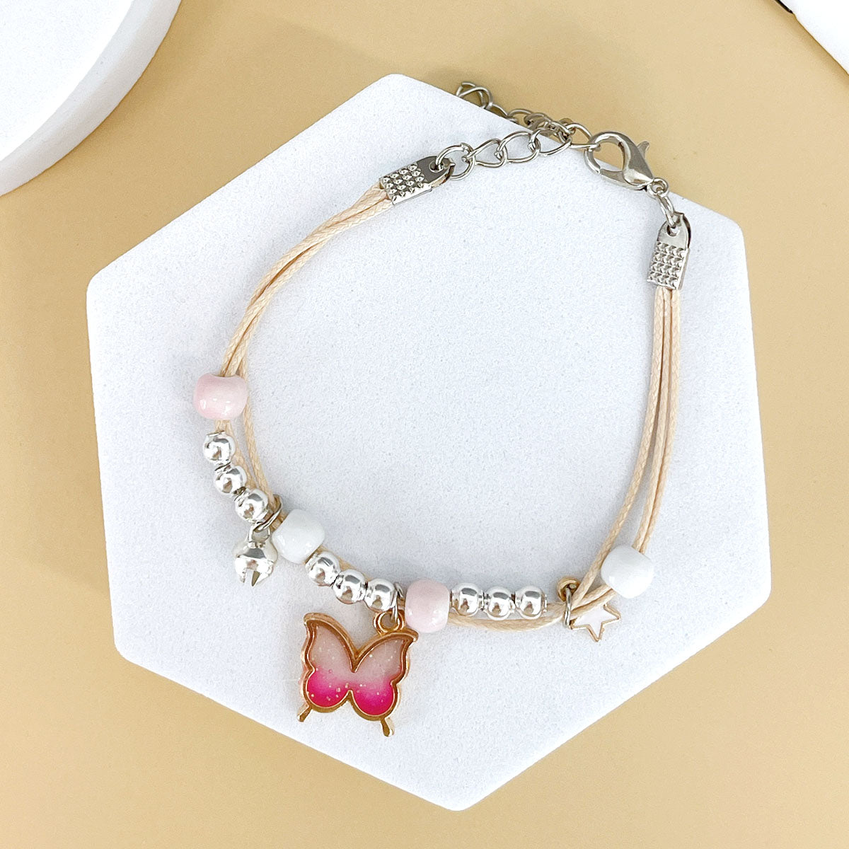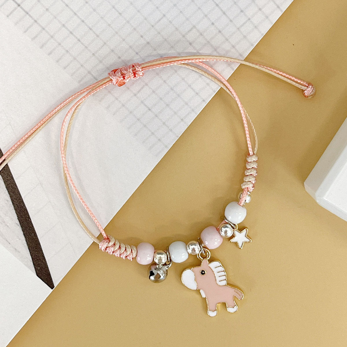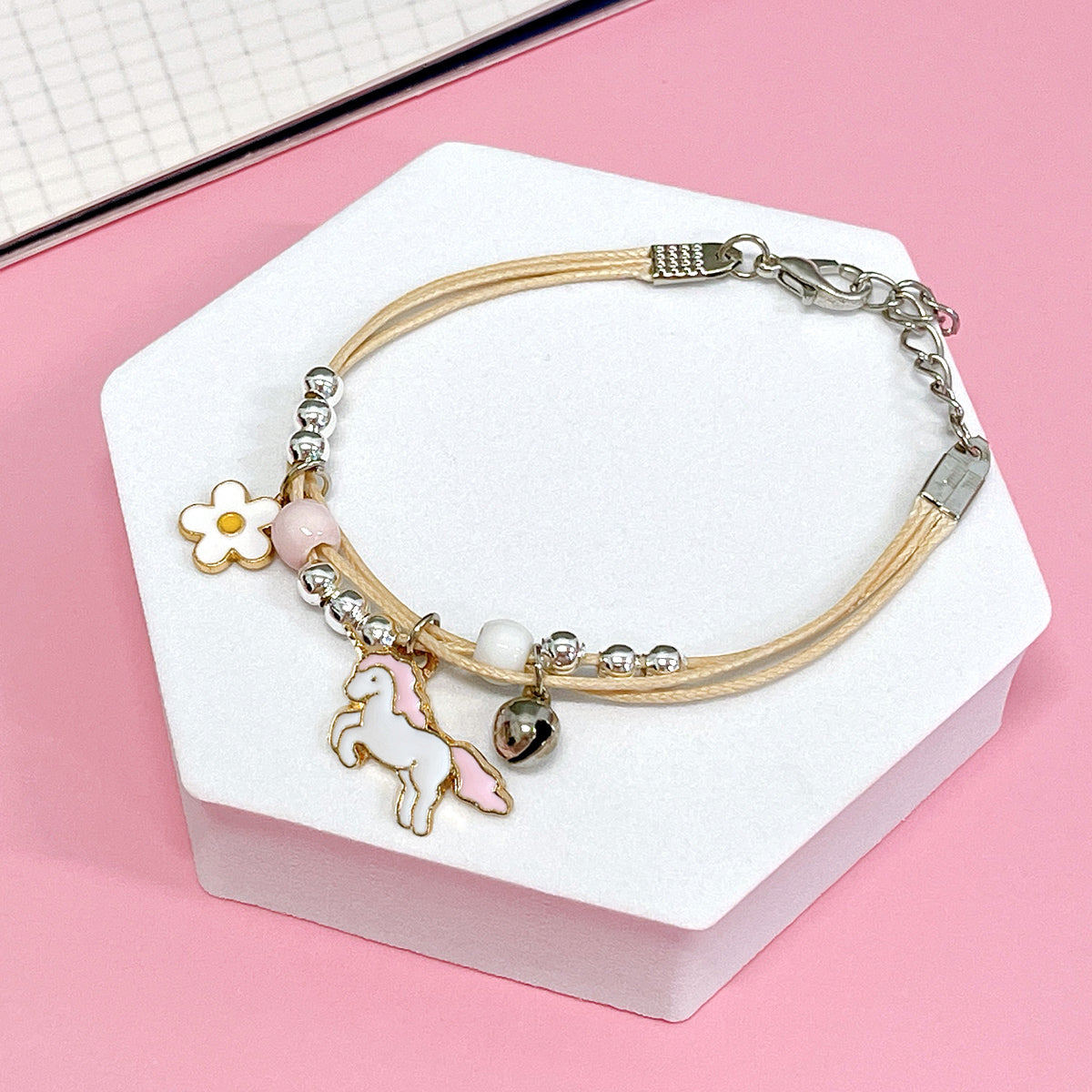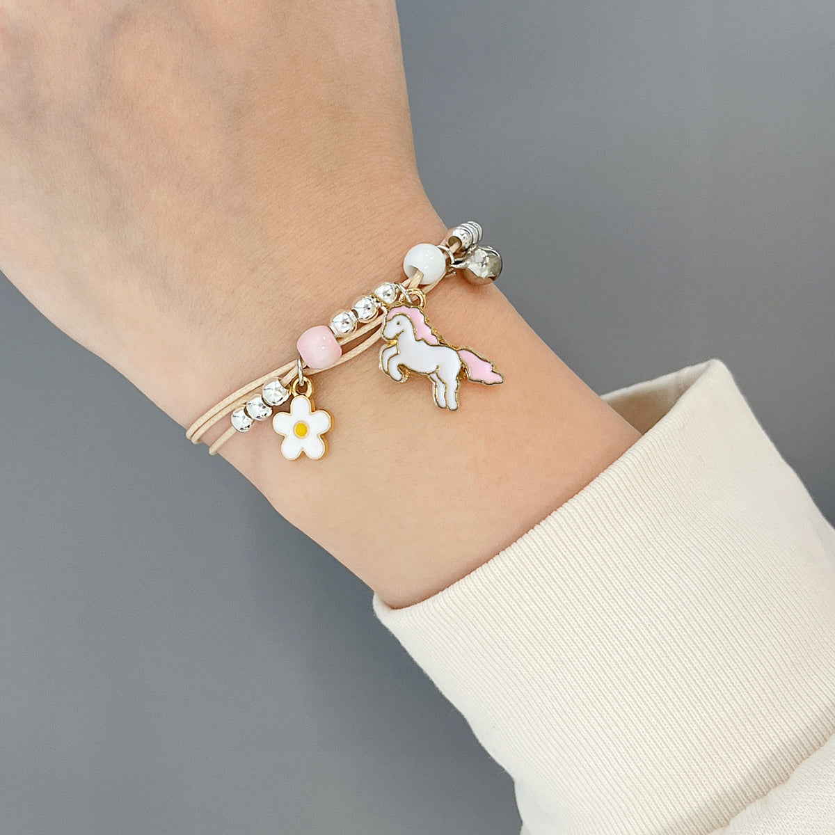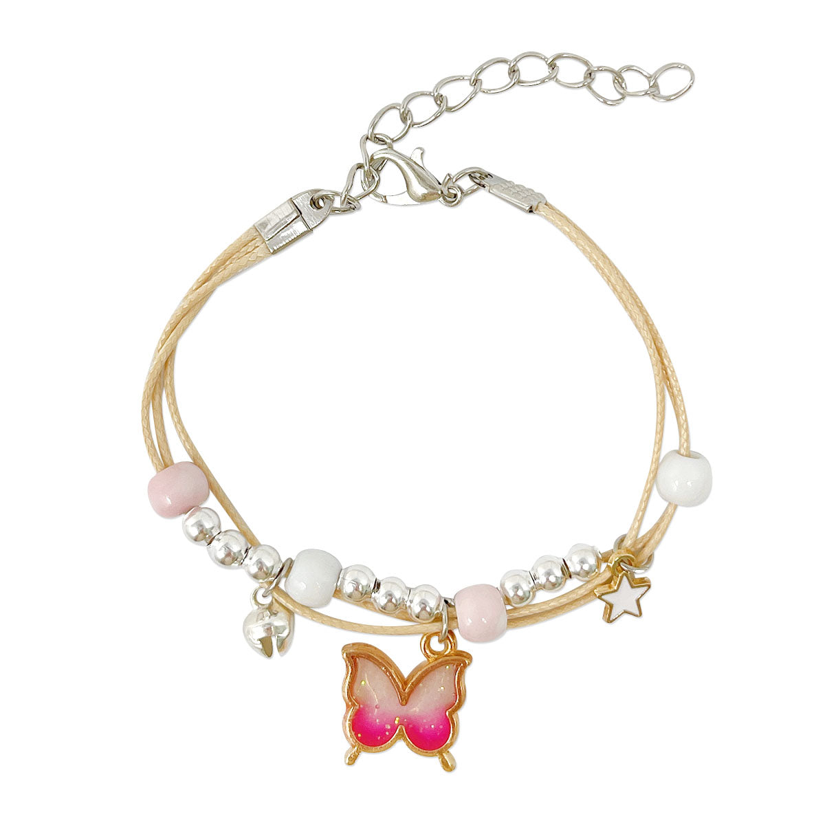 - Adjustable bracelets: circumference adjustable from approximately 2 to 9.25 inches; charm size varies by design, ~0.5L x 0.75W inches; beads 0.19W inches.