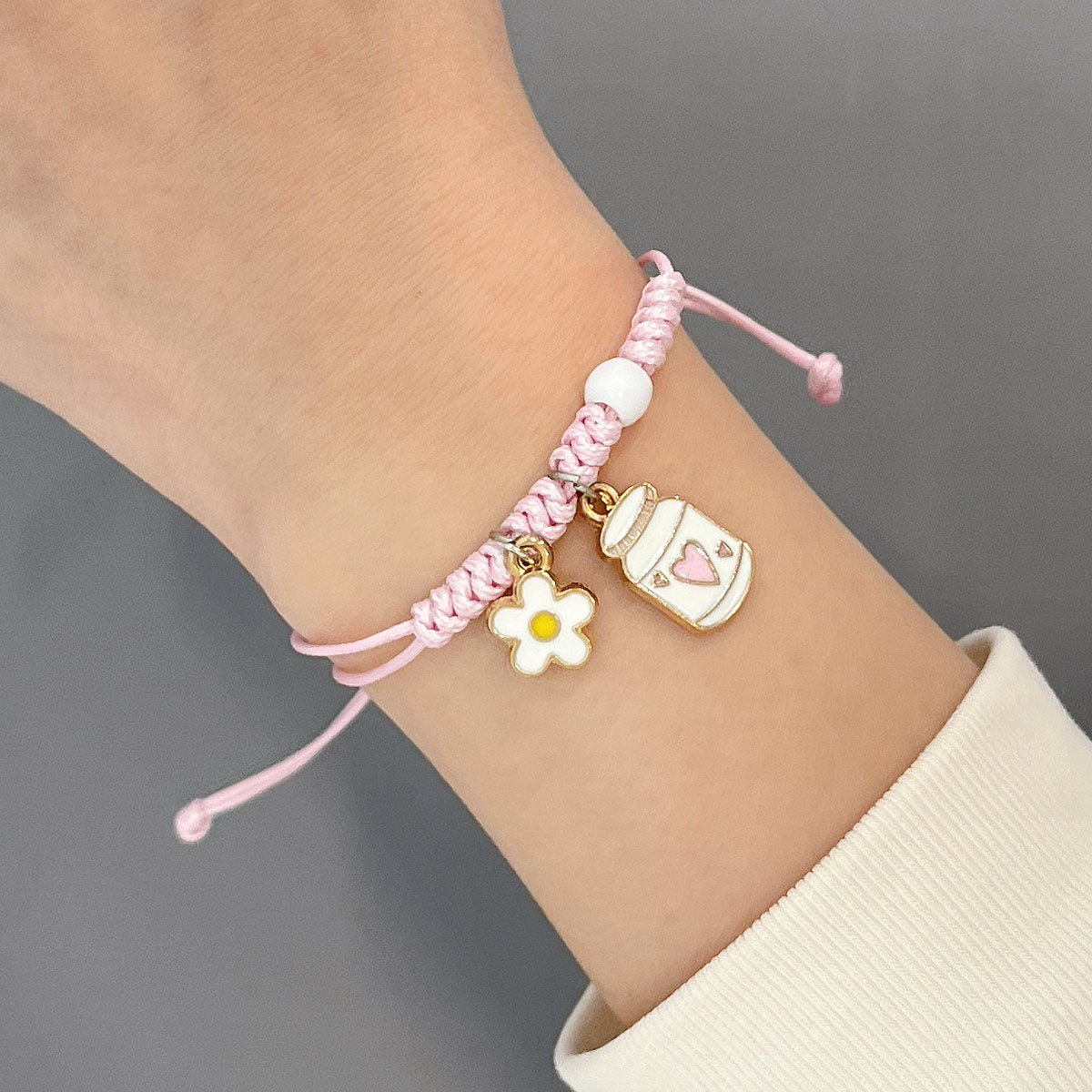 - Bracelets are available in a variety of different charms and designs to match you and your friend's personality. Stack the bracelets together for a stylish look. Bracelets are either adjustable, elastic, or come with an extension chain, made to fit any size arm. For the adjustable bracelets, simply pull the cords to make the bracelet smaller, and the sides to expand the bracelet.