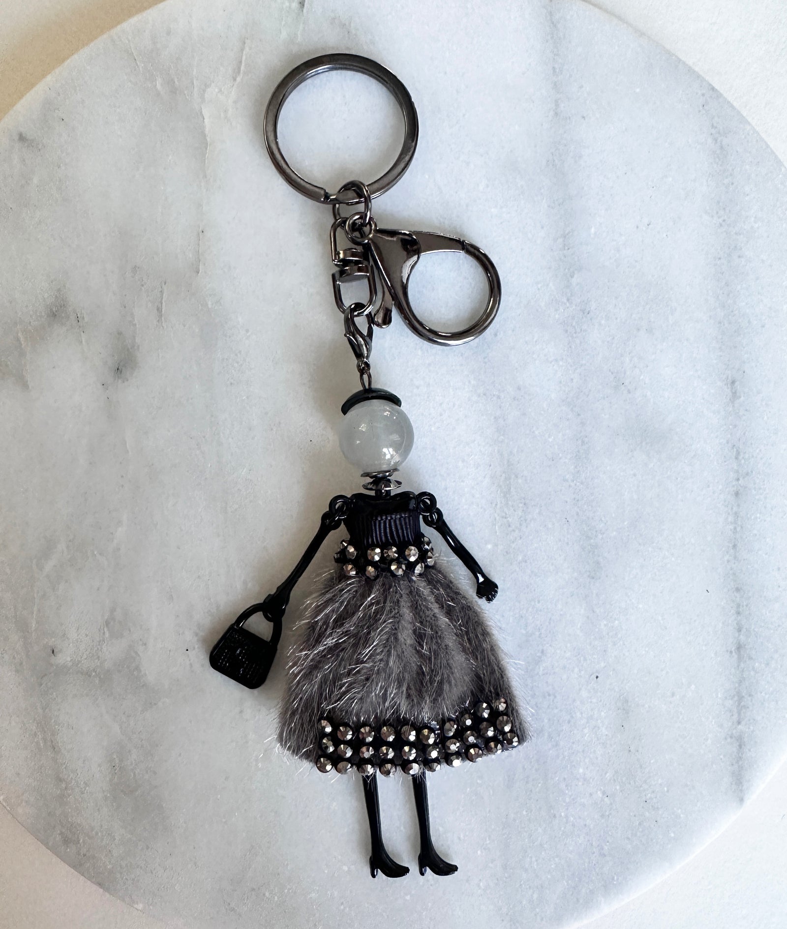 Wrapables Hanging Fashionista Doll Keychain, Crystal Rhinestone Keyring Bag Charm