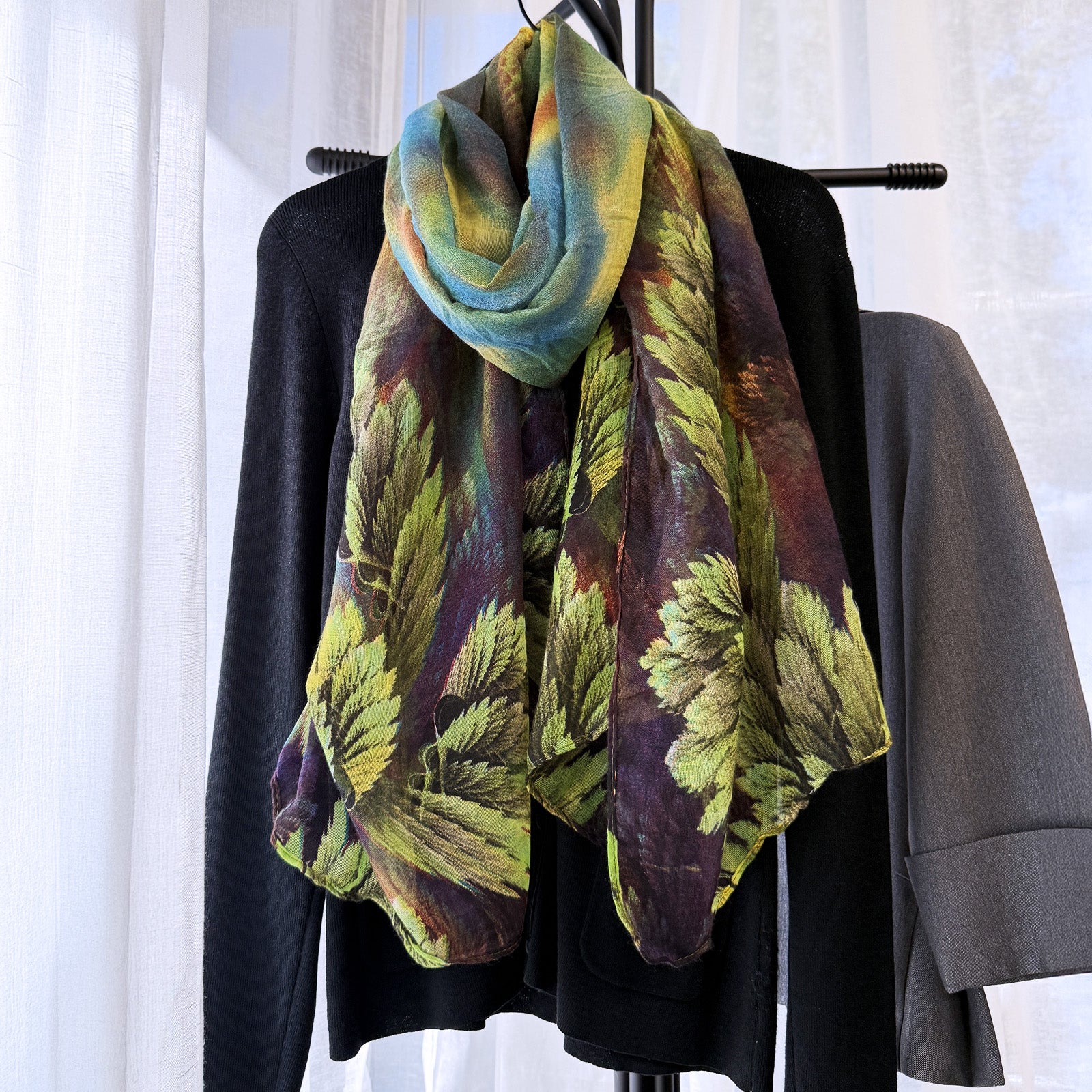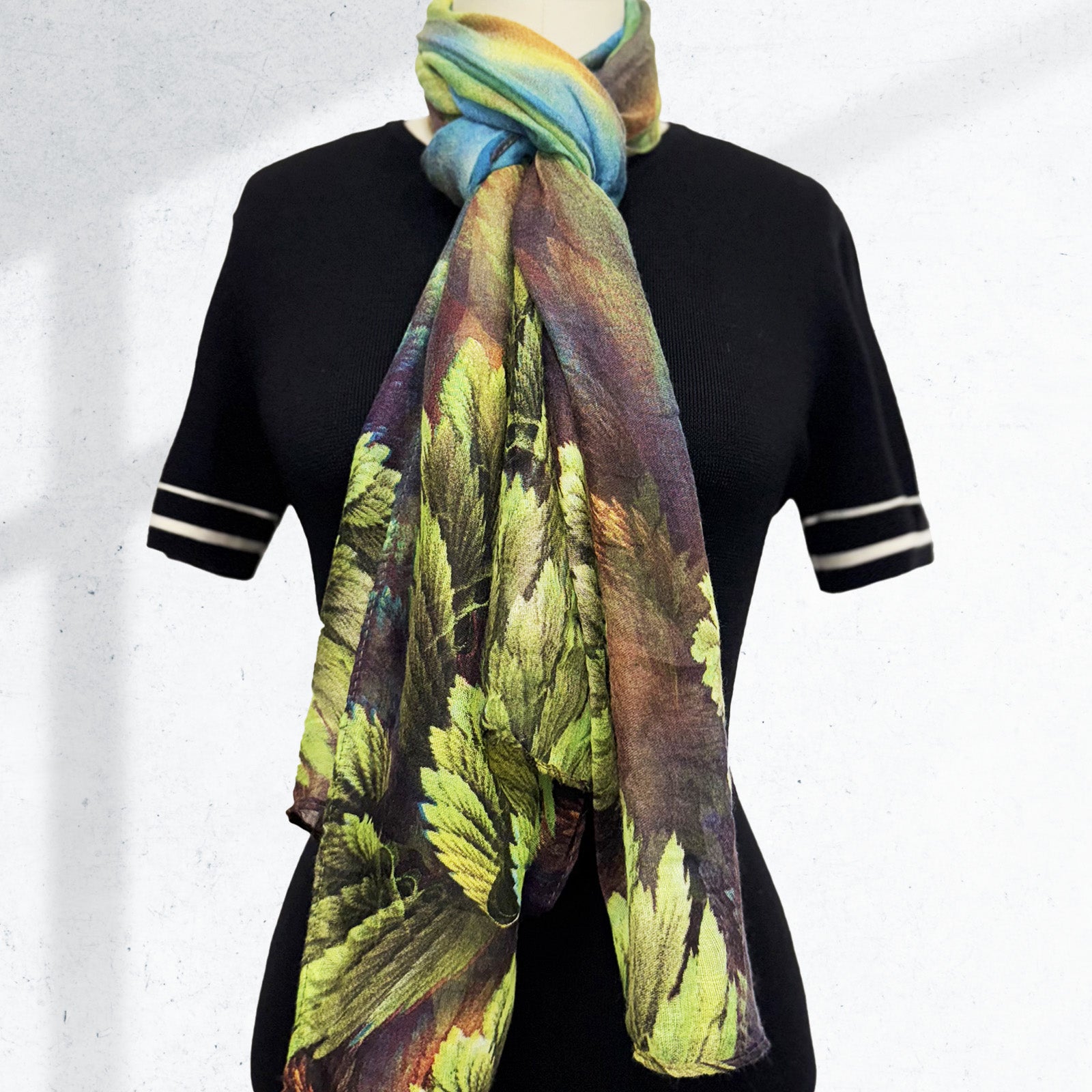 Add a touch of nature-inspired elegance to your wardrobe with our Lightweight Fern Leaves Long Scarf. Crafted from soft, breathable viscose, this versatile accessory is designed to complement your style year-round, offering just the right amount of warmth and comfort in any season. The delicate botanical fern print brings a fresh, fashionable twist to your outfit, whether you’re dressing up a casual ensemble or adding a graceful accent to a more formal look. This scarf allows for multiple styling options: drape it around your neck, wrap it around your shoulders, tie it at the waist, or even accessorize your purse or hat for a pop of natural charm. Lightweight and airy, it’s the perfect piece to enhance your personal style while adding a splash of subtle color and texture.