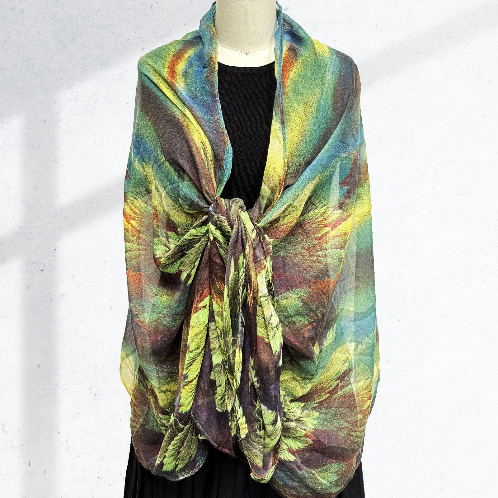 Wrapables Lightweight Fern Leaves Long Scarf, Green
