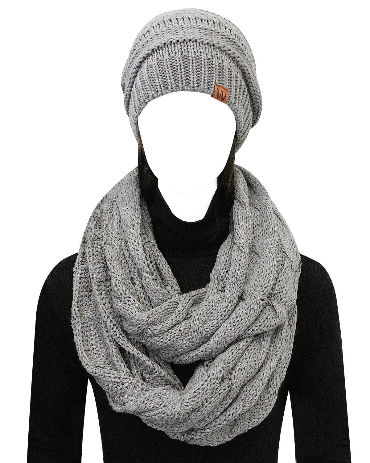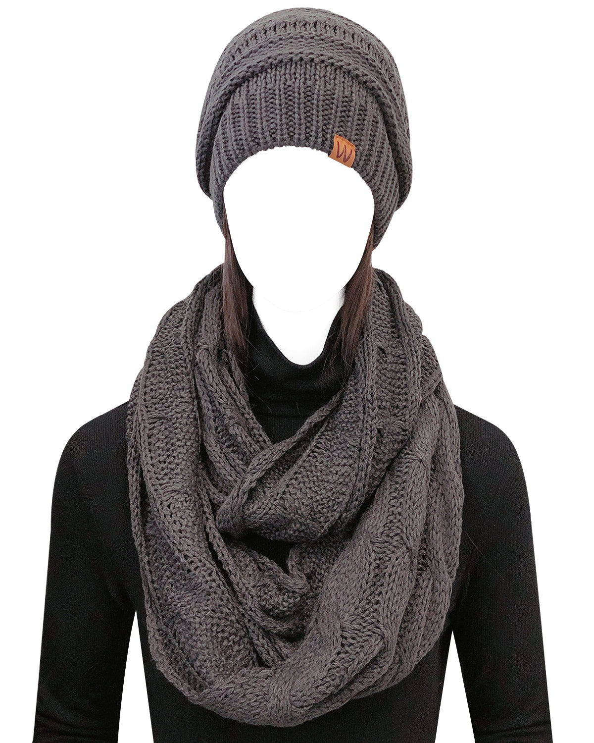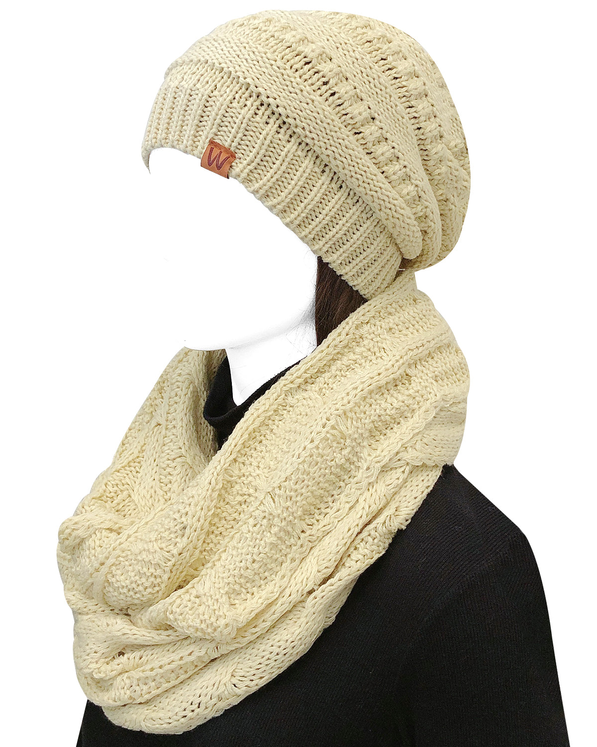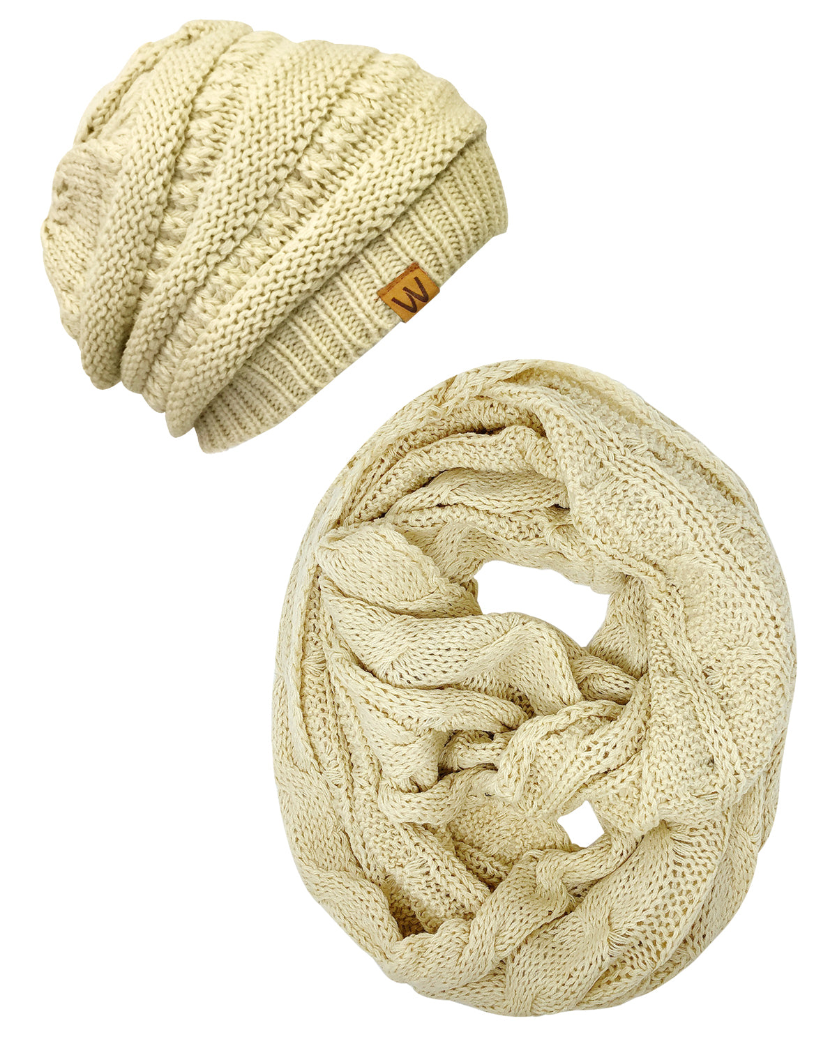 Wrapables Winter Warm Chunky Cable Knit Infinity Scarf and Beanie Set