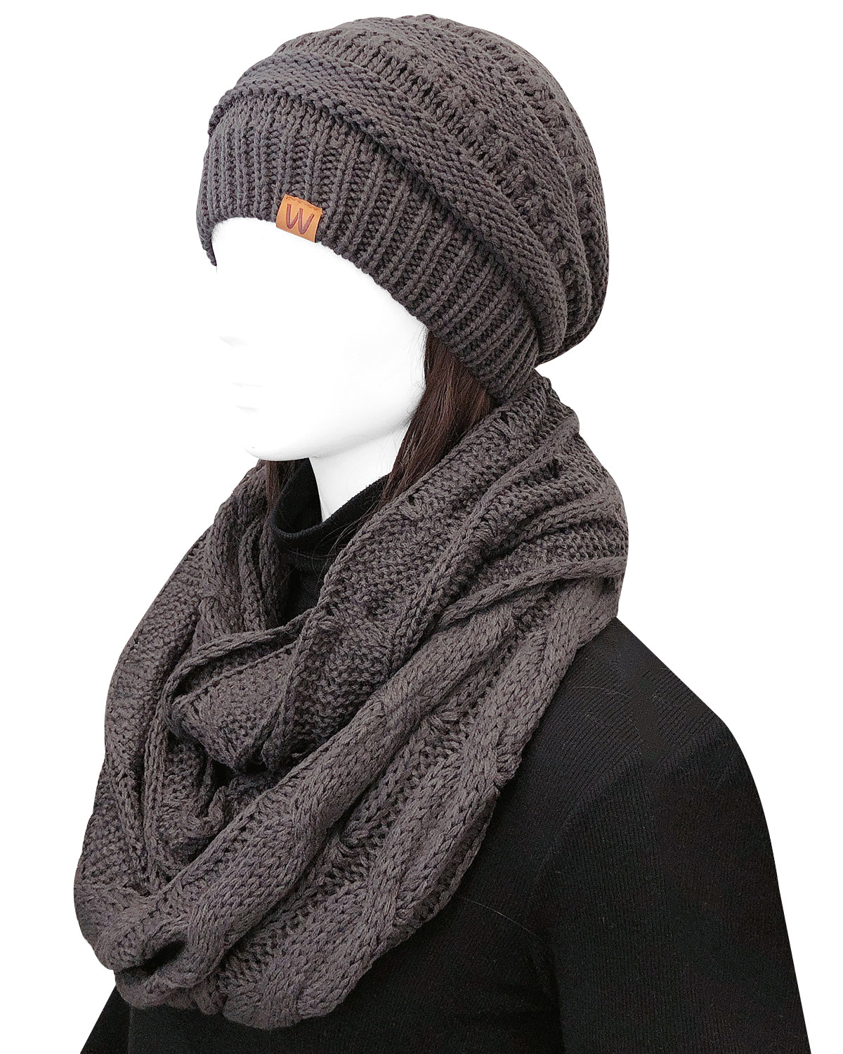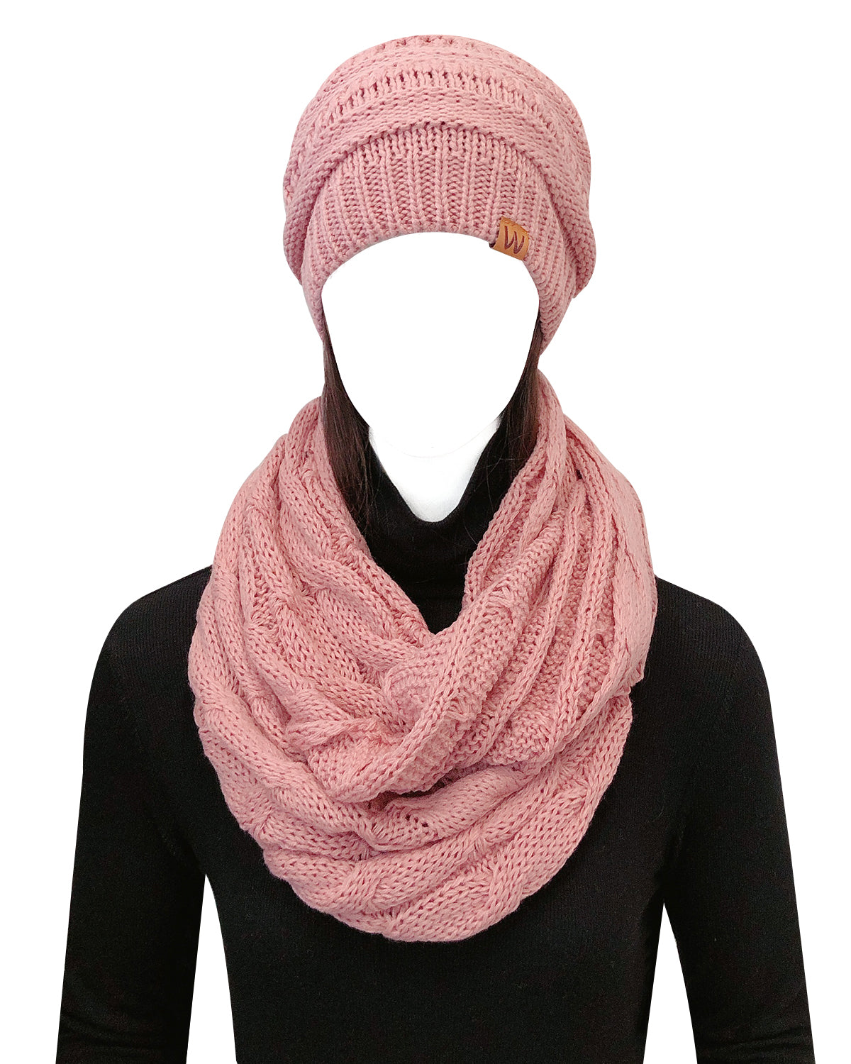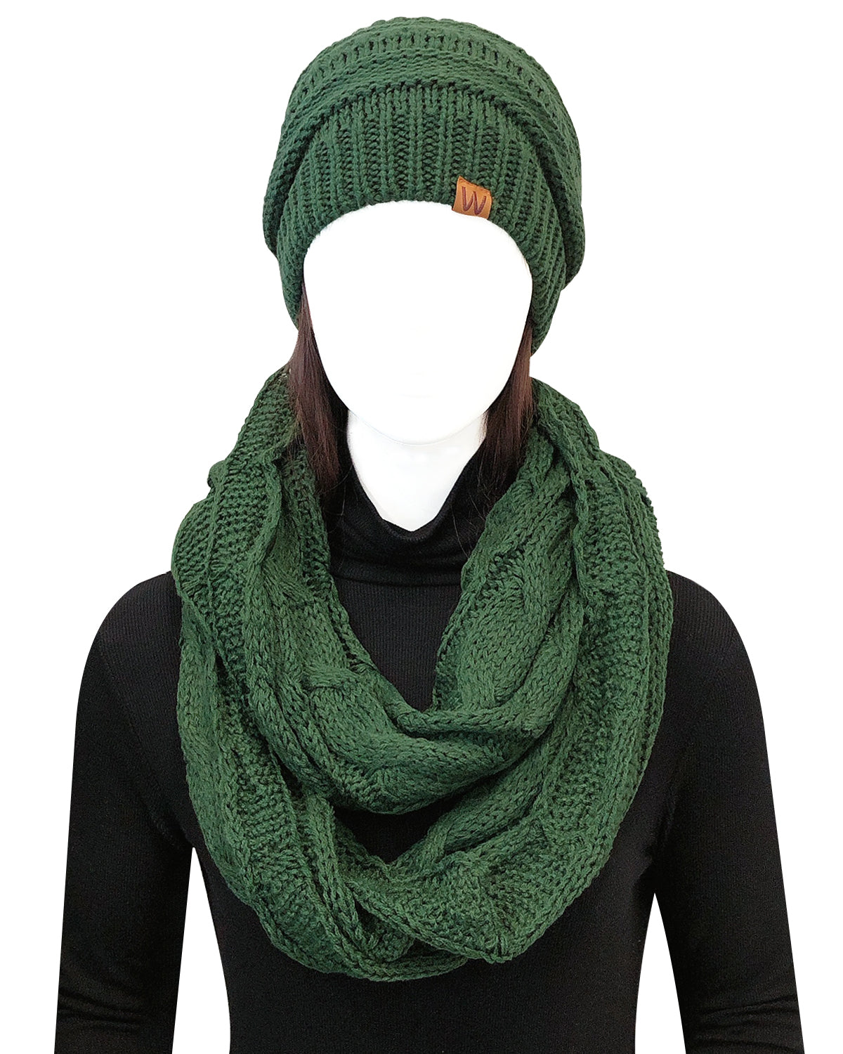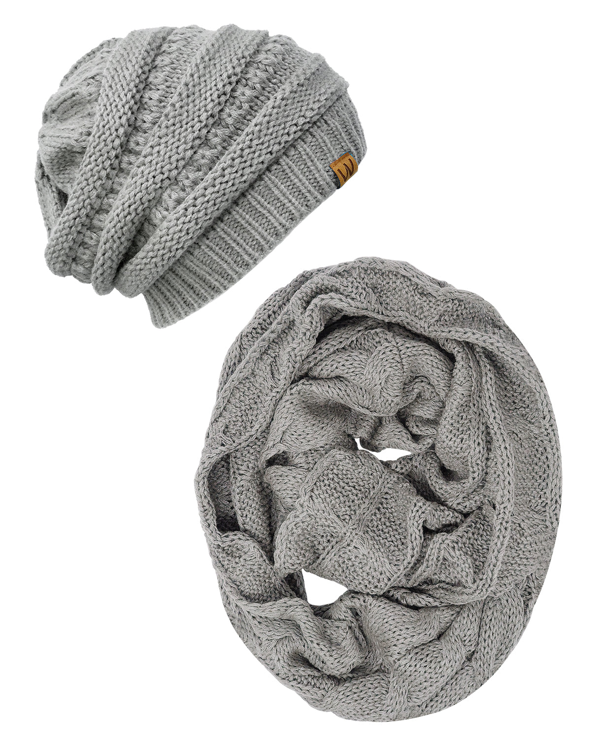 Wrapables Winter Warm Chunky Cable Knit Infinity Scarf and Beanie Set