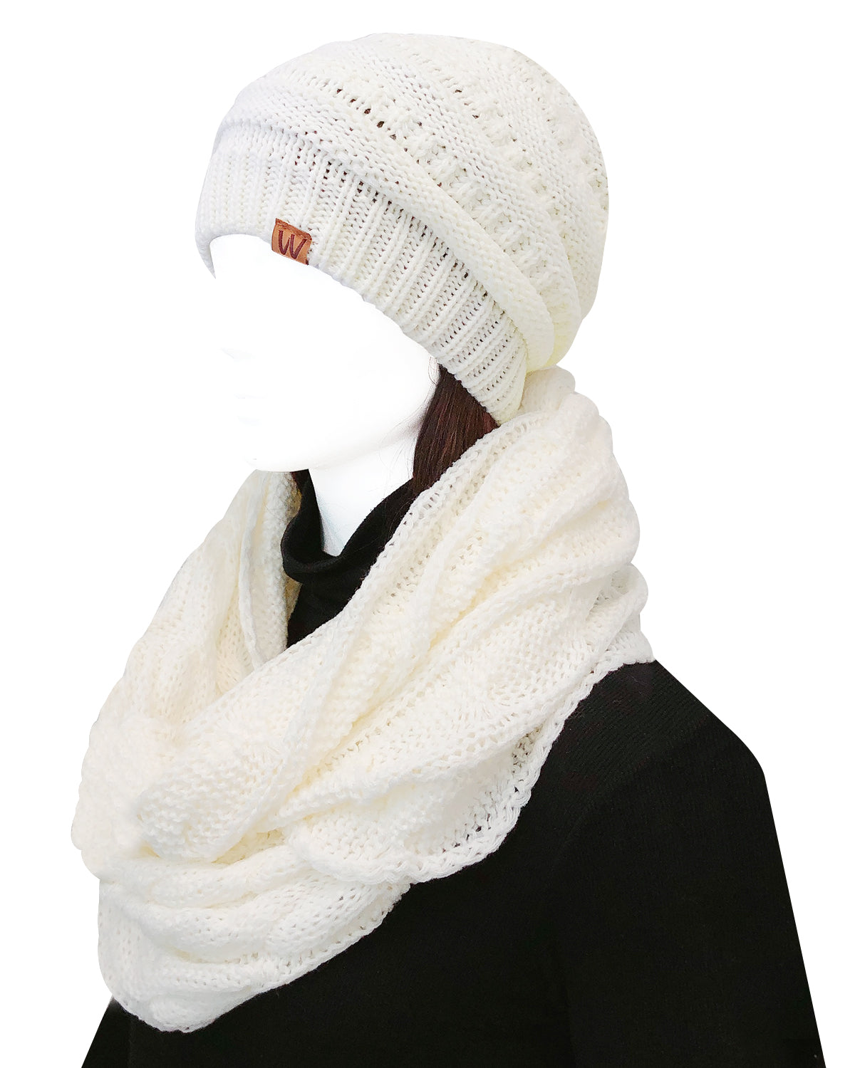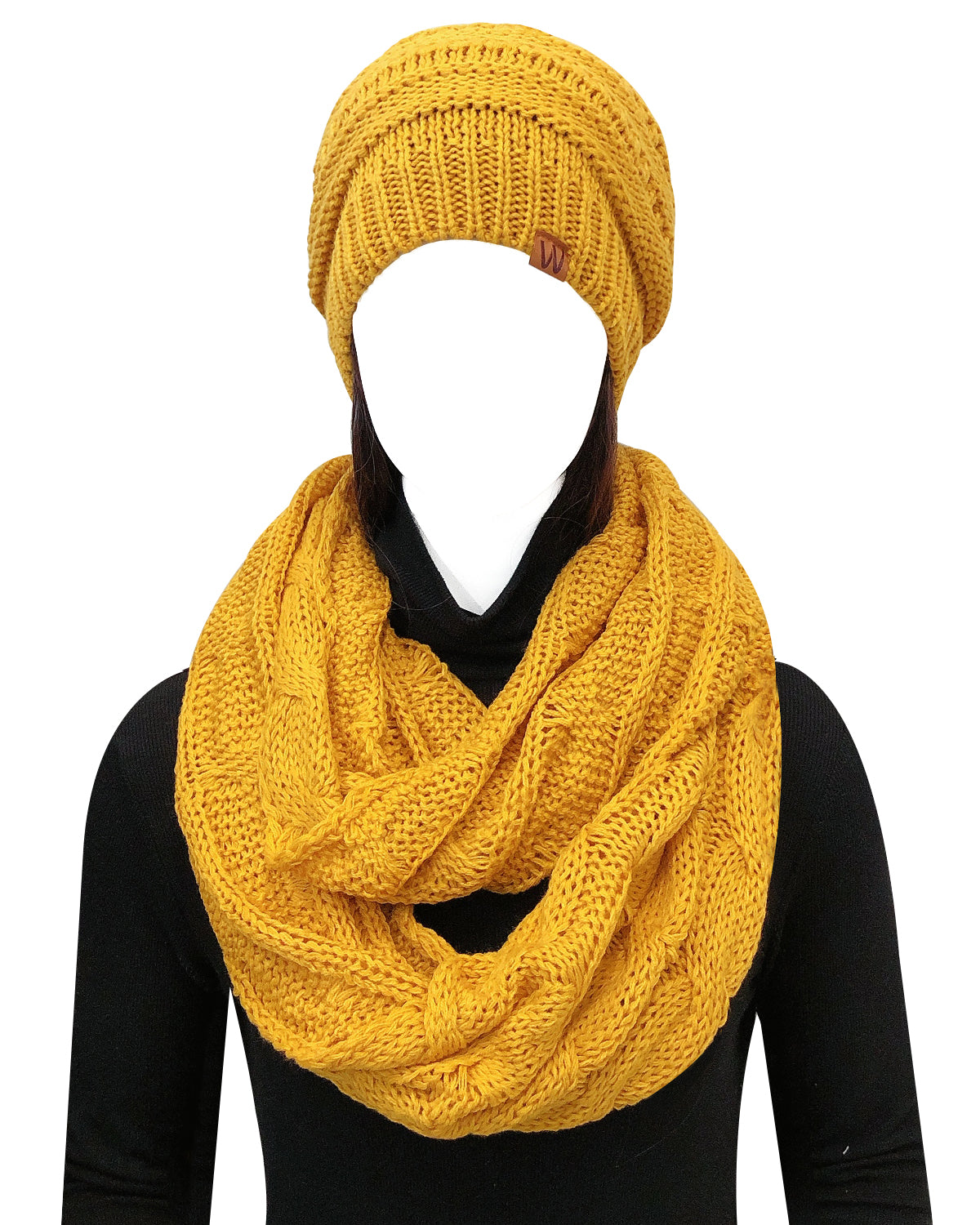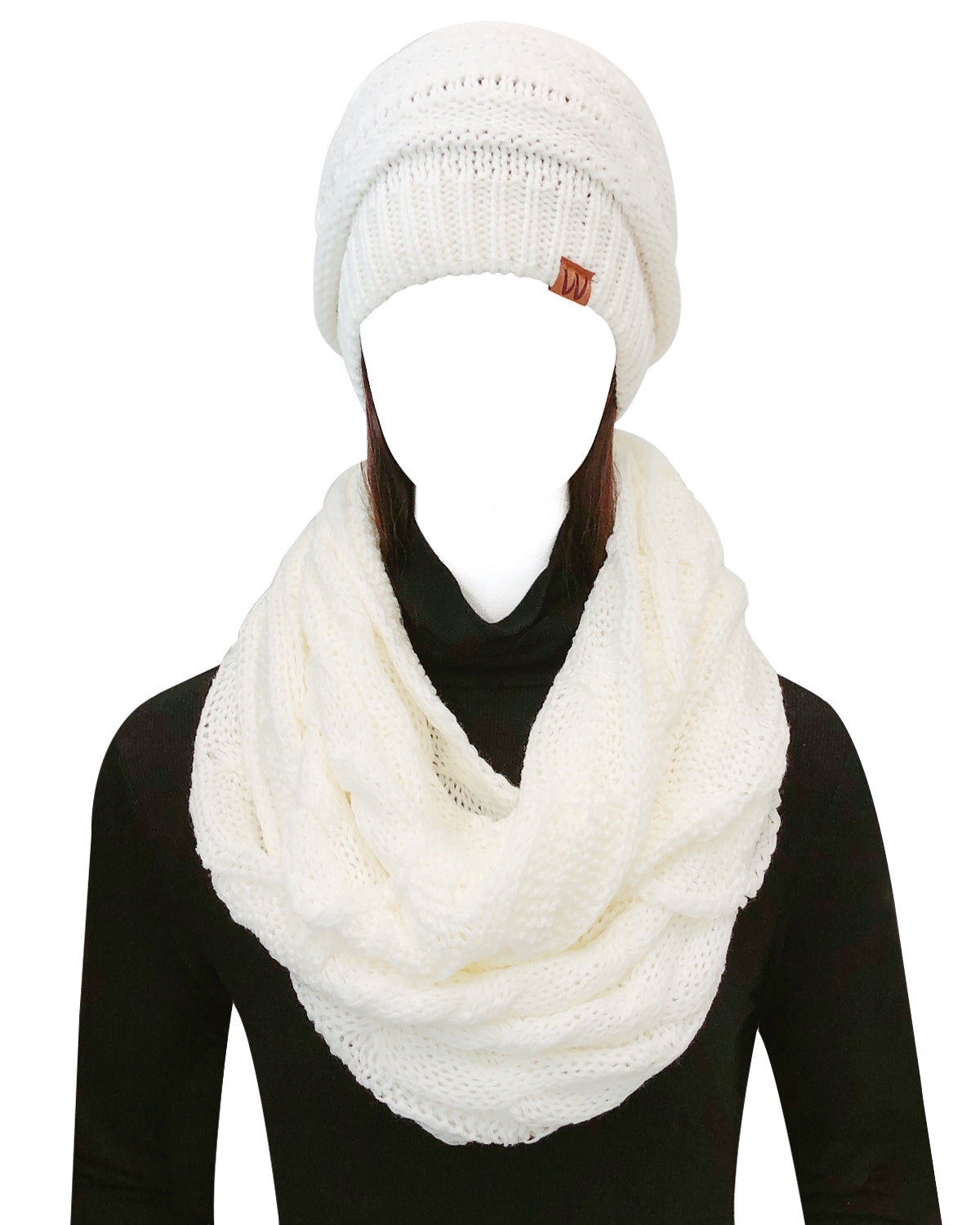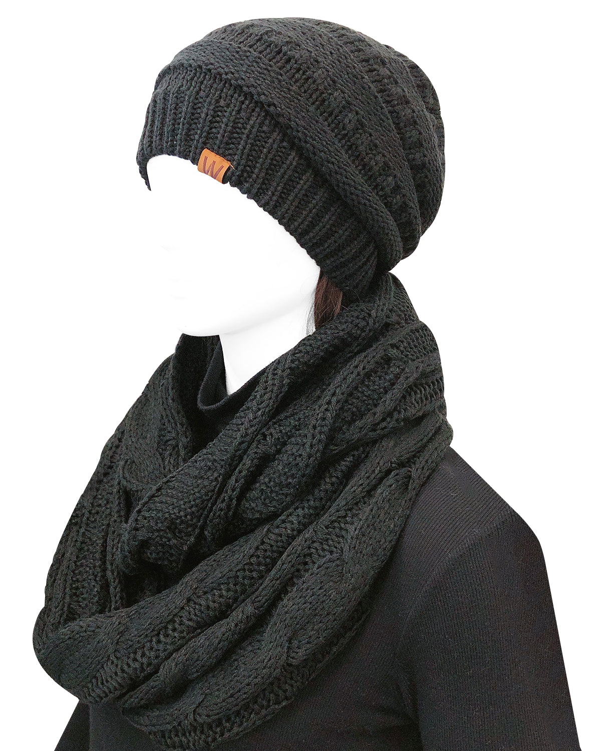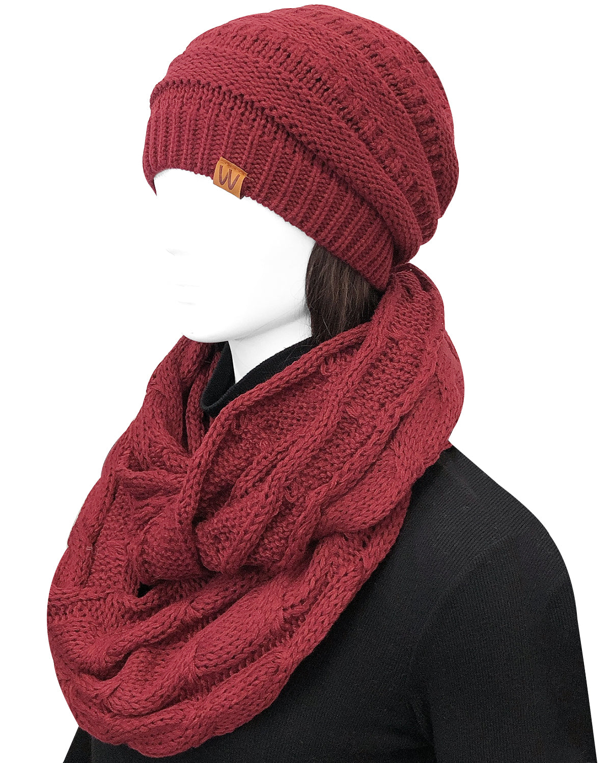 Wrapables Winter Warm Chunky Cable Knit Infinity Scarf and Beanie Set