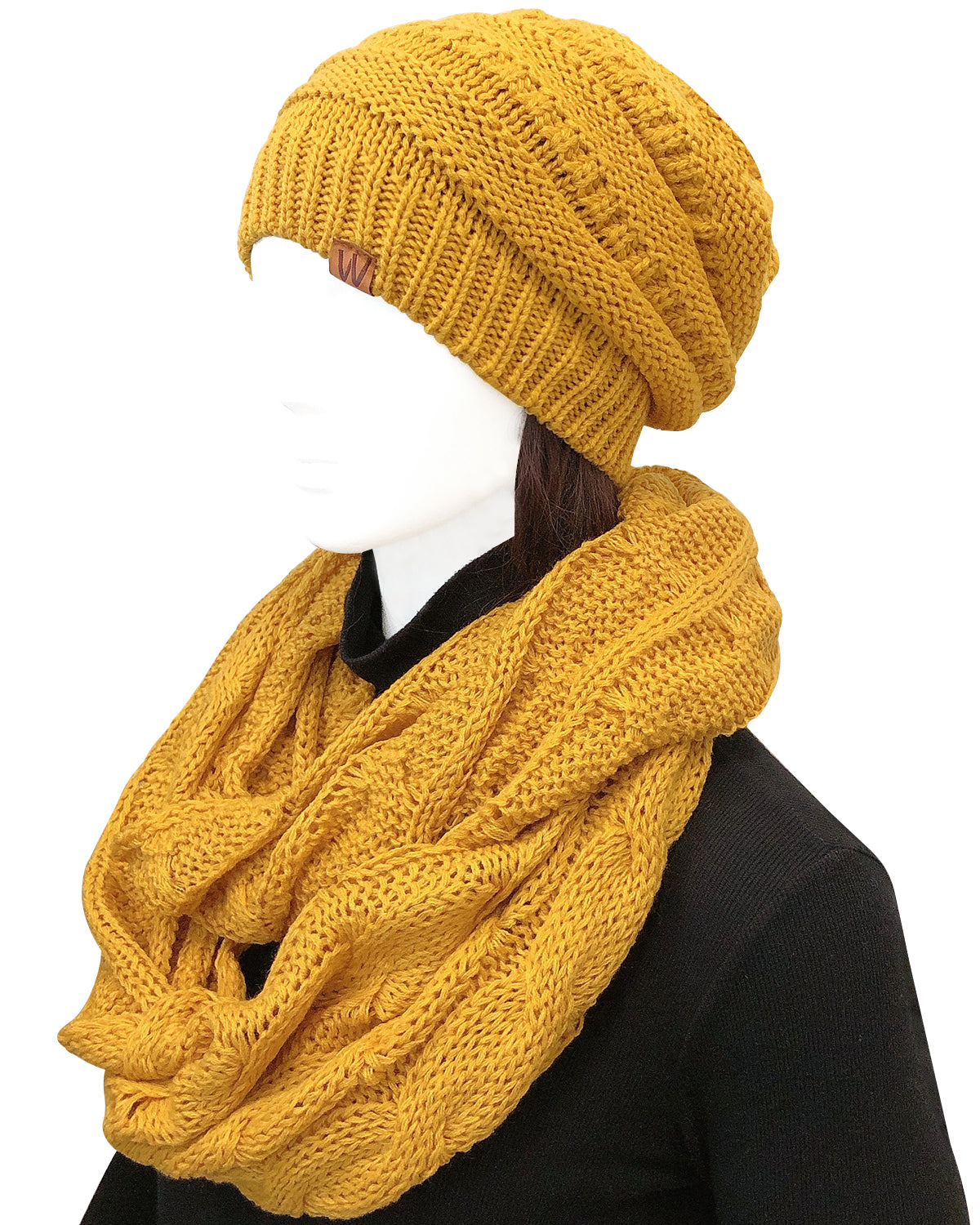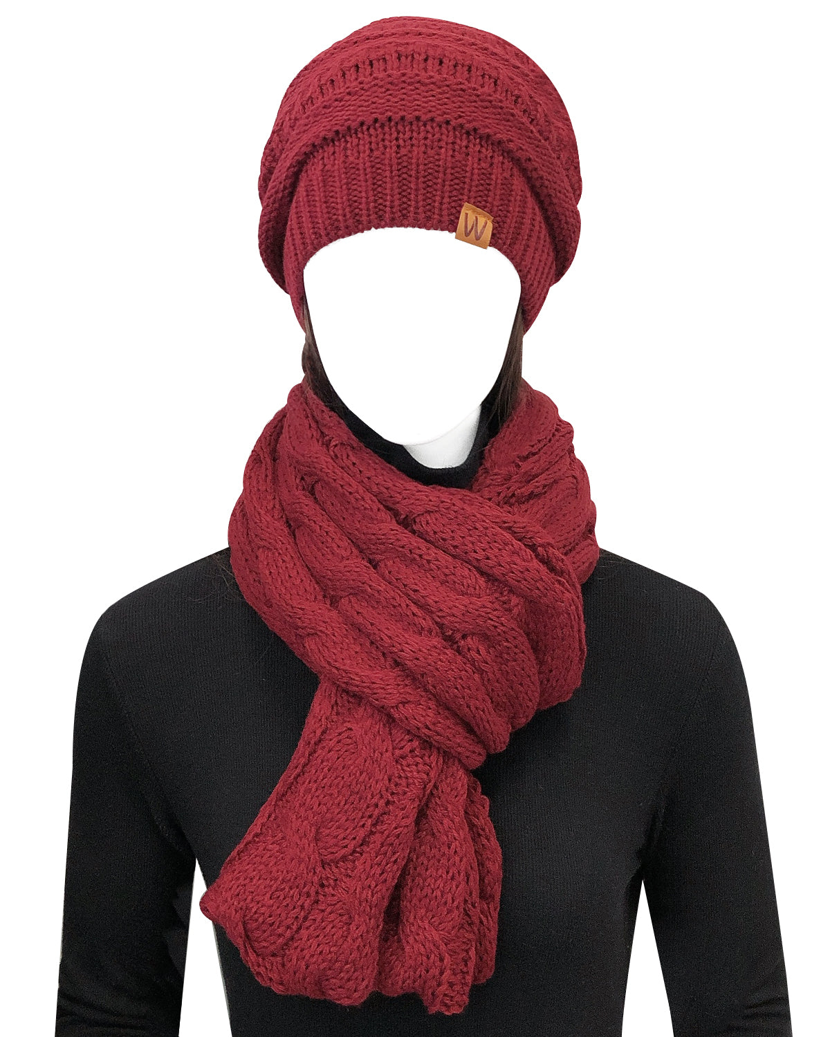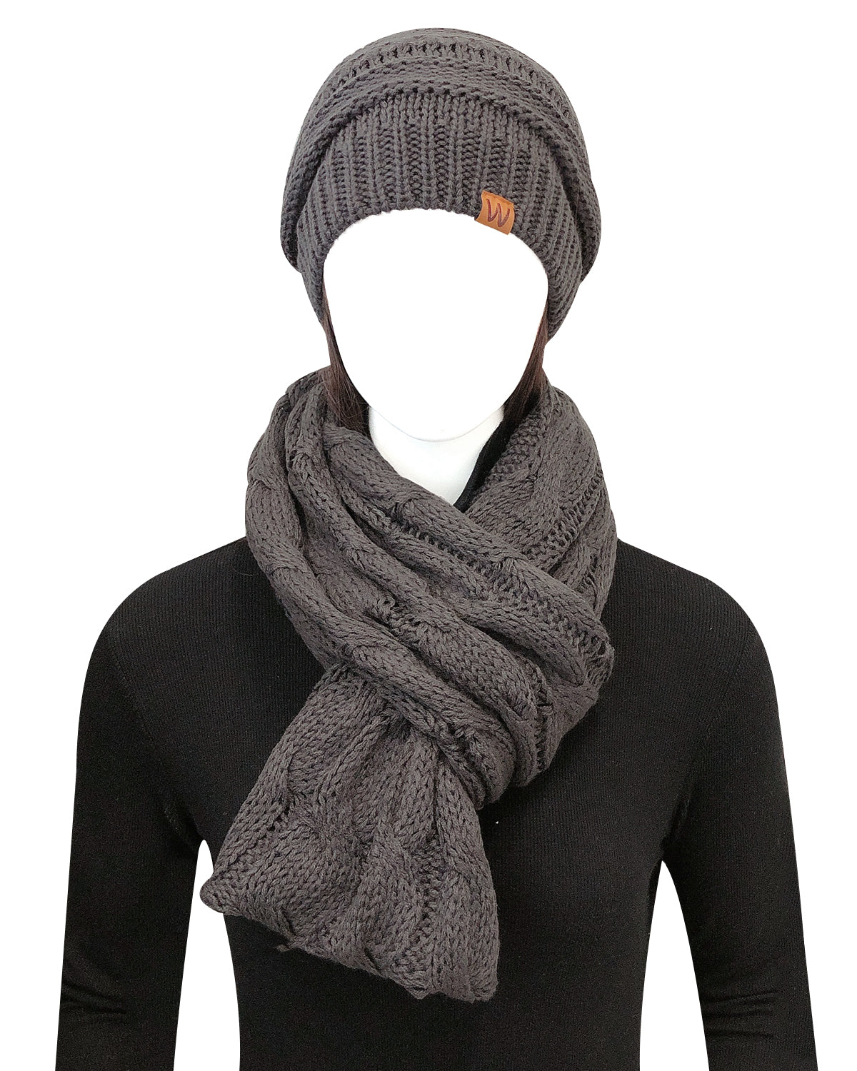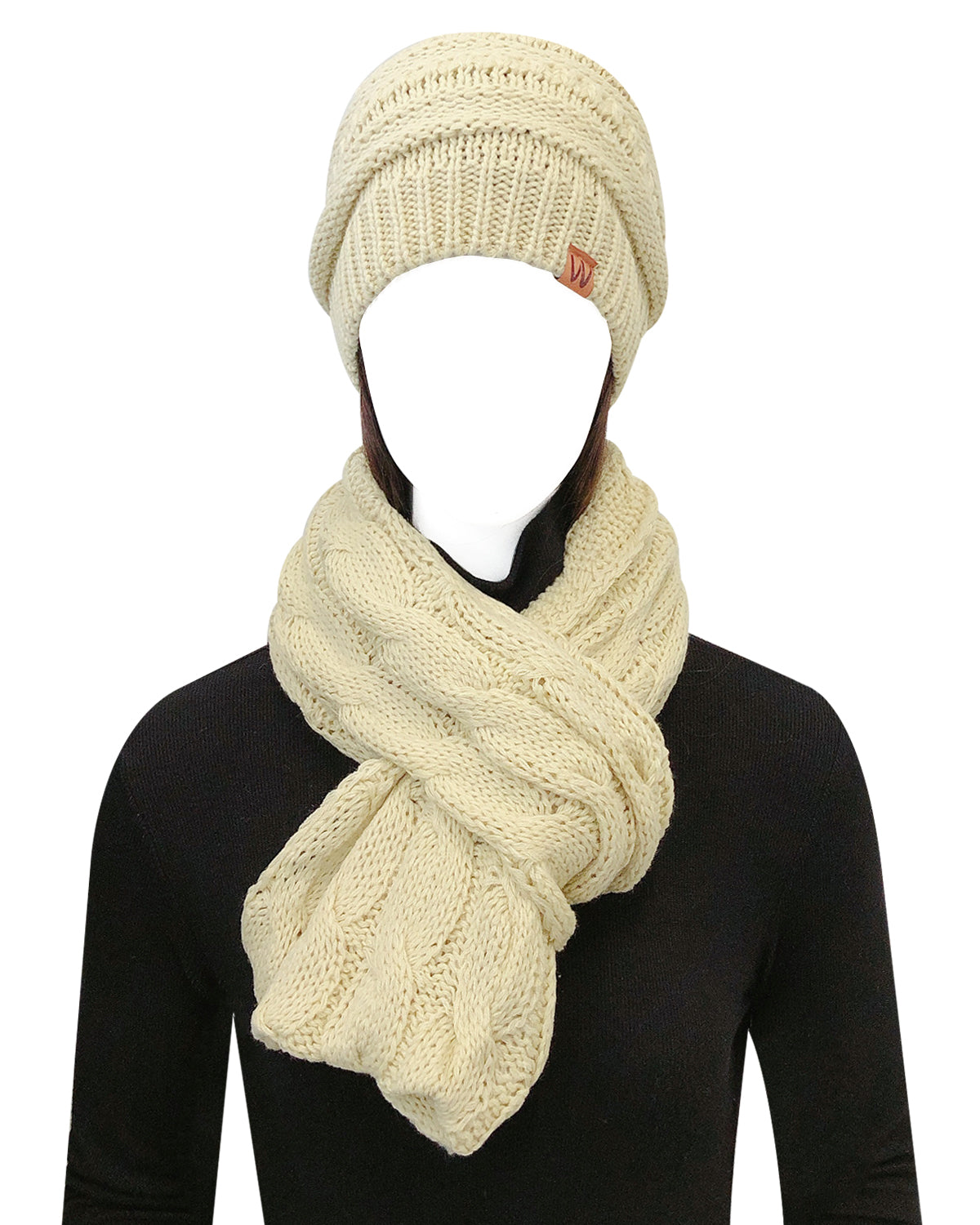 Wrapables Winter Warm Chunky Cable Knit Infinity Scarf and Beanie Set