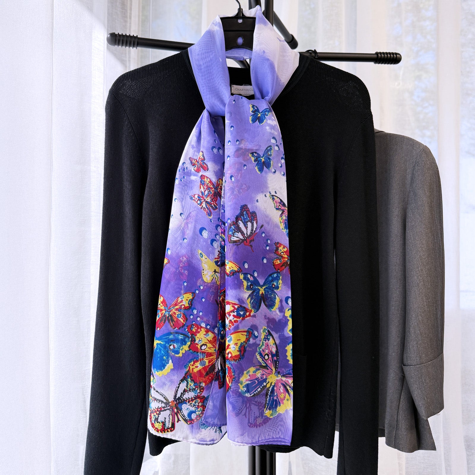 Wrapables Lightweight Vibrant Spring Chiffon Scarf, Purple Butterflies