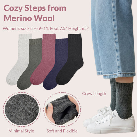 Wrapables Thick Thermal Warm Merino Wool Hiking Socks for Women (Set of 5)