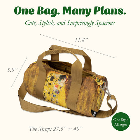 Embrace the shimmering allure of Gustav Klimt’s The Kiss with this recycled medium weekender. Featuring Klimt’s iconic sensuality and celebration o...