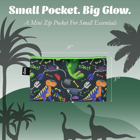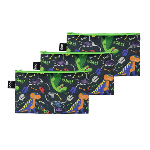 LOQI Kids DINOSAUR Roar Recycled Mini Zip Pocket, Pencil Pouch, Snack Bag, Travel Pouch (Set of 3)