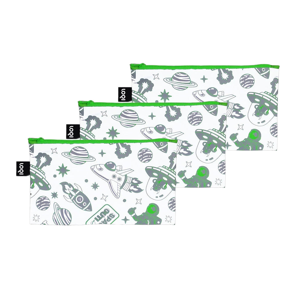 LOQI Kids SPACE Out Reflective Mini Zip Pocket, Pencil Pouch, Snack Bag, Travel Pouch (Set of 3)