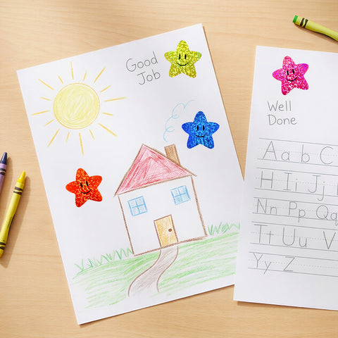 Bring a burst of brilliance to your projects and celebrations with our 1.5 Inch Smiling Stars Holographic Glitter Sticker Roll. Each of the 500 sti...