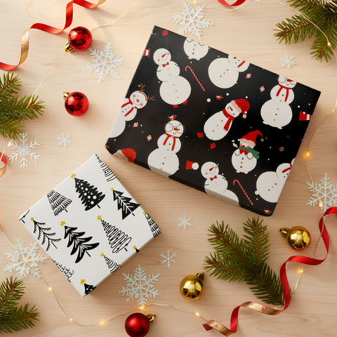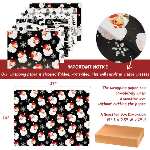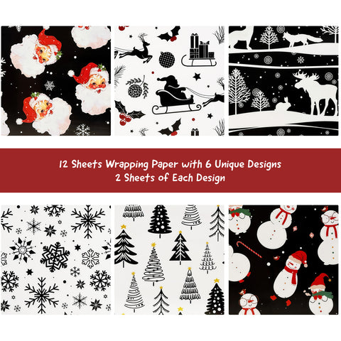 Wrapables 12pcs Christmas Wrapping Paper, Holiday Gift Wrap Paper, Sheets Folded Flat 20L x 27W inches, Black and Red