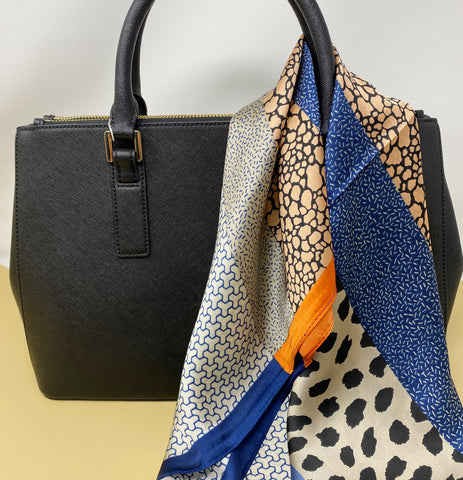 Wrapables 2 Piece Silky Feeling Satin Neckerchief Scarf Set, 26.5" Square Scarf Value Pack, Animal Neutrals