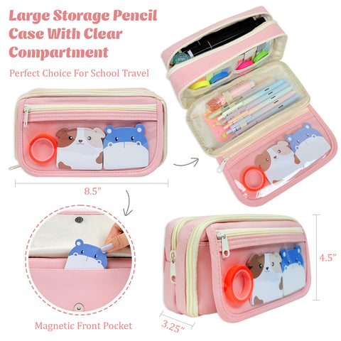 Wrapables 9-Layer Large Capacity Pencil Case with Transparent Compartment, Organizer Pouch for Stationery Tools, Makeup, and Travel
