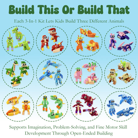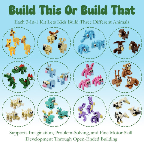 Wrapables Animal Building Blocks Set, 3-in-1 Building Kits for Party Favors, Goodie Bag Stuffer, Stocking Stuffer (Set of 12)