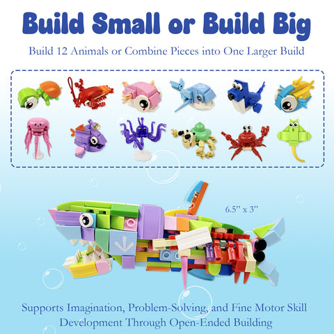 Wrapables Animal Building Blocks Set for Party Favors, Goodie Bag Stuffer, Stocking Stuffer (Set of 12), Ocean Park