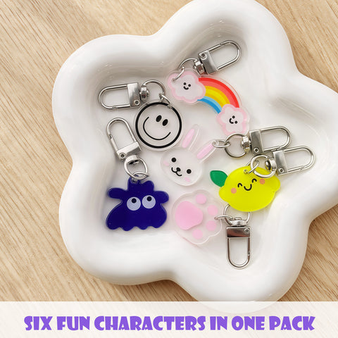 Wrapables Assorted Novelty Characters Keychain, Bag Charm Accessory for Purse Handbag Backpack (Set of 6)