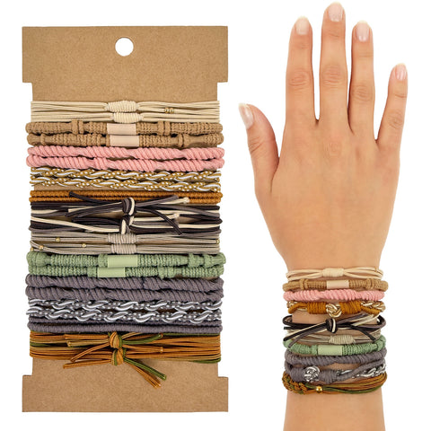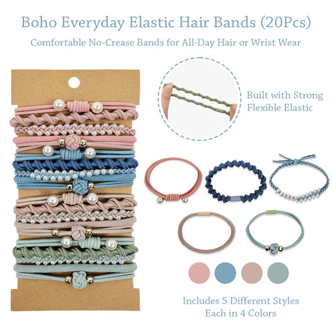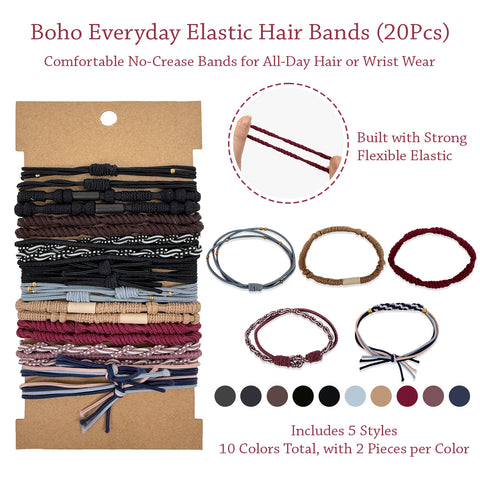 Wrapables Boho Hair Tie Bracelets for Women, No Damage Elastic Hair Bands, Hair Accessories for Thick and Thin Ponytails (20pcs)