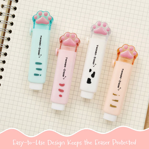 Wrapables Cat Paw Retractable Erasers, Push-Pull Design, Stationery Office Supplies (Set of 4), Pastel