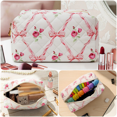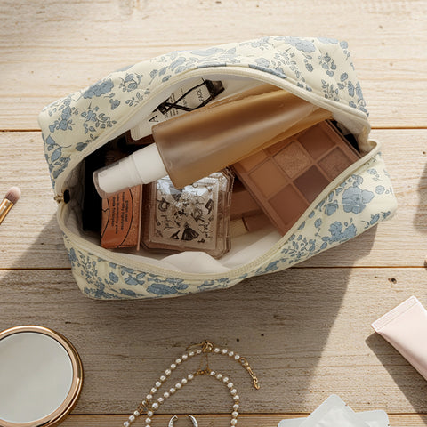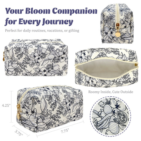 Wrapables Floral Quilted Makeup Bag for Cosmetics, Toiletries, Travel