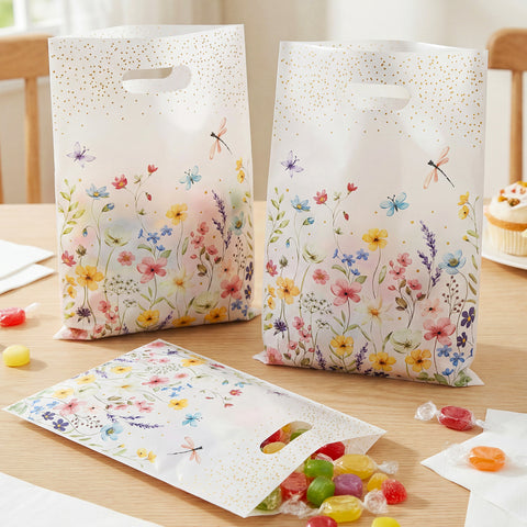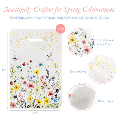 Wrapables Floral Spring Gift Bags for Party Favors, Candy, Cookies, Treats, Gifts, Birthday Parties, Weddings, Baby Shower, and Mothers Day (50pcs)