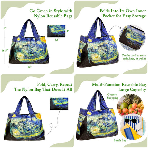 Our Large Foldable Oil Painting Nylon Reusable Grocery Bags are a portable work of art. Designed to combine function with beauty, each bag features...